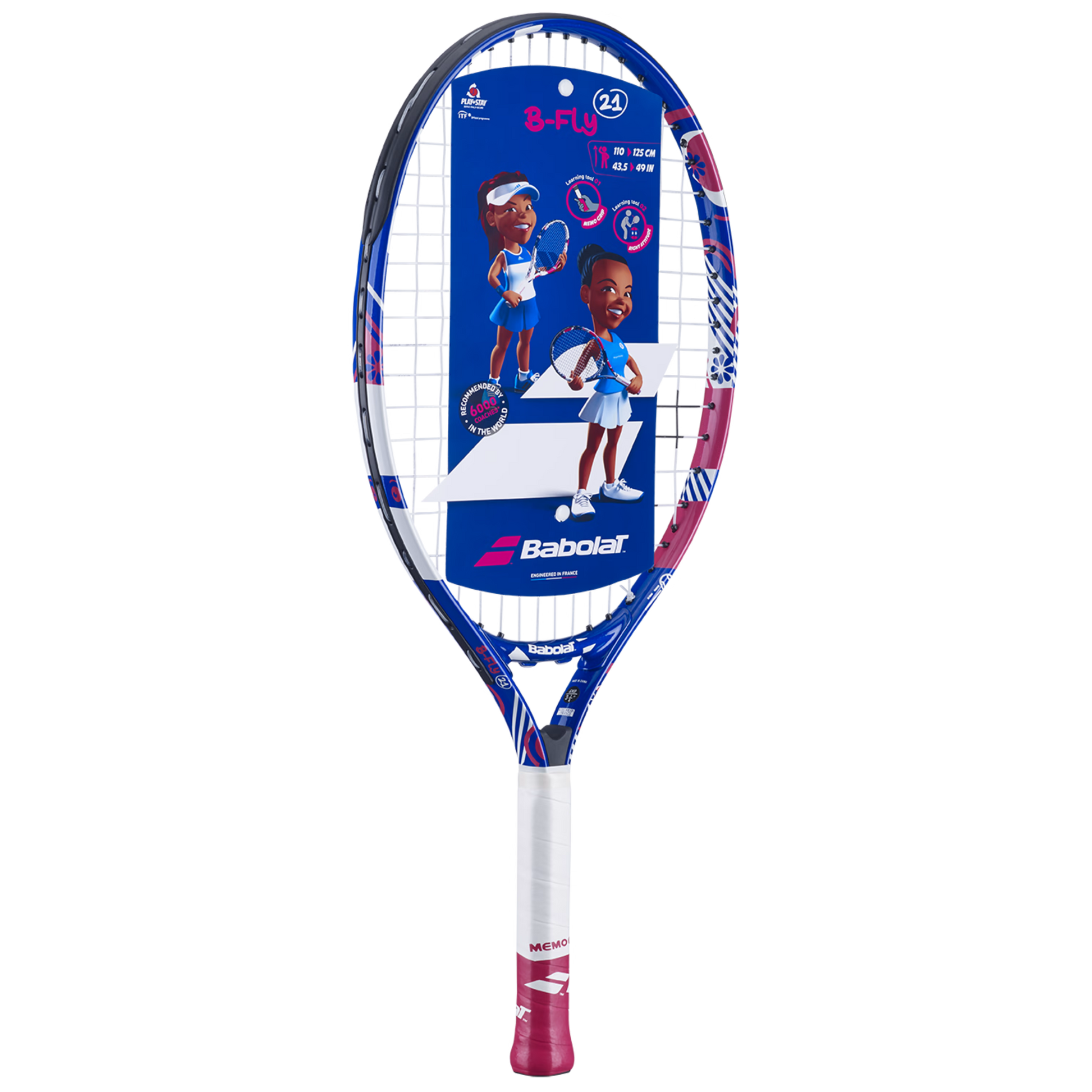 The B'FLY 19 tennis racket is lightweight, easy to handle, and forgiving—perfect for young beginners. With a fun and colorful design, it’s designed to delight children and support their learning through built-in teaching tools. It is endorsed by 6,000 coaches worldwide and recommended for players between 95–110 cm in height.