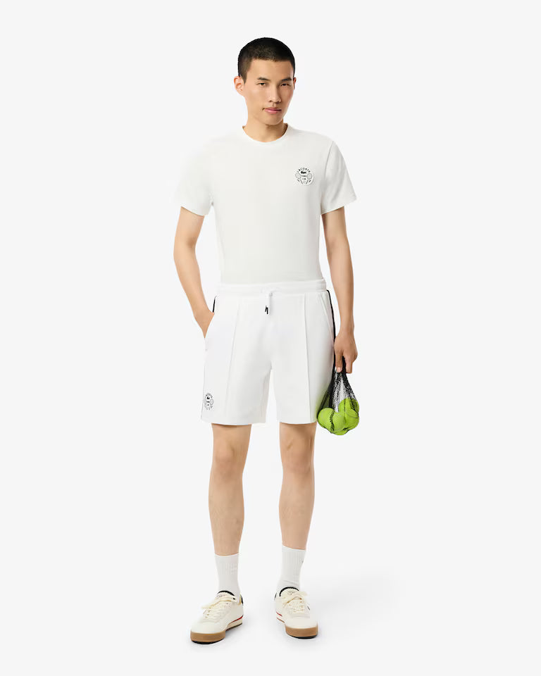Estes calções de ténis combinam moda e desporto, exibindo os 90 anos de experiência criativa da Lacoste. Feitos de tecido polar elástico com tecnologia Ultra Dry, oferecem liberdade de movimentos e mantêm-no fresco. Uma peça técnica com um design elegante e retro e o emblema da marca, que alia estilo e performance.